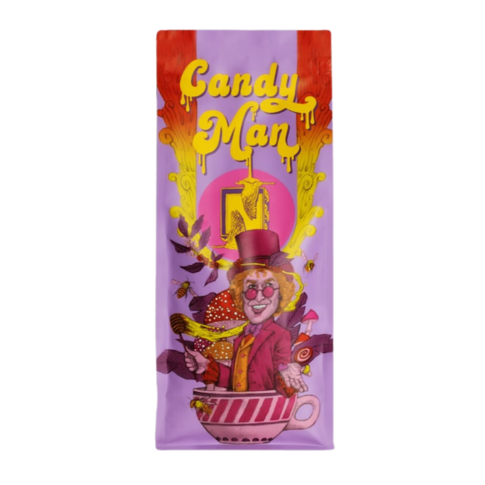 Offering an all-natural and honey processed blend, this Nightjar Coffee Candyman Seasonal Blend of super sweet coffee has notes of over-ripe marmalade, roasted marshmallow, gummy bears, and jammy starfruit. Its good to have anytime as a jammy espresso, a brew, or full cream milk latte. The blend is perfect for all brewing methods and is roasted medium-light to give you those notes. The coffee is obtained Rwanda, Burundi, and Brazil. The Red Catuai and Red Bourbon coffee beans are used to make this blend. Ingredients: Red Catuai and Red Bourbon Coffee Beans.