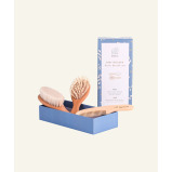The sweetest set for a registry or gifting if you have a new bundle of joy on the way! The set includes three accessories: One soft brush for baby’s fine hair A wooden bristle brush for the toddler age and up A wooden comb for longer hair The Soft Brush is made with natural goat hair bristles and a natural beech wood handle. The Wooden Bristle Brush is made with natural wooden bristles and a beech wood handle. Both brushes are made of solid beech wood while the comb of maple wood. These brushes reduce static on baby’s hair and clothing, while also being water-resistant. Brushing your baby’s hair daily with the soft bristle brush helps to distribute natural oils and prevents cradle cap. The rounded teeth of our wooden brush gently detangle your little one’s hair without hurting his scalp. It’s packaging is super cute and stylish so you don’t even need to wrap it. It’s designed to be unisex.