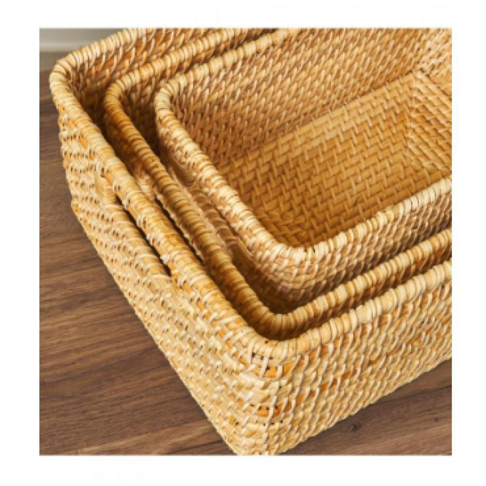 One look and youll agree our Rattan Bins are simply gorgeous storage and organization solutions! Each is handwoven with a quality thats second to none! Use them in the living room, craft room or office to get beautifully organized! Multipurpose rectangular storage basket with handles, it can be a great decorative storage basket for any room, from the kitchen counter tops to the closets. We use 100% natural material with durable quality, which add farmhouse and rustic, bohemian touch for your space. It is a great way to conveniently organize seasonal items, beauty supplies, arts and craft, or even snacks. Why you select this item: - Our rustic woven basket is made from 100% natural rattan in minimalist style. Basket Measure: L 38 x W 28 x H 18 cm.