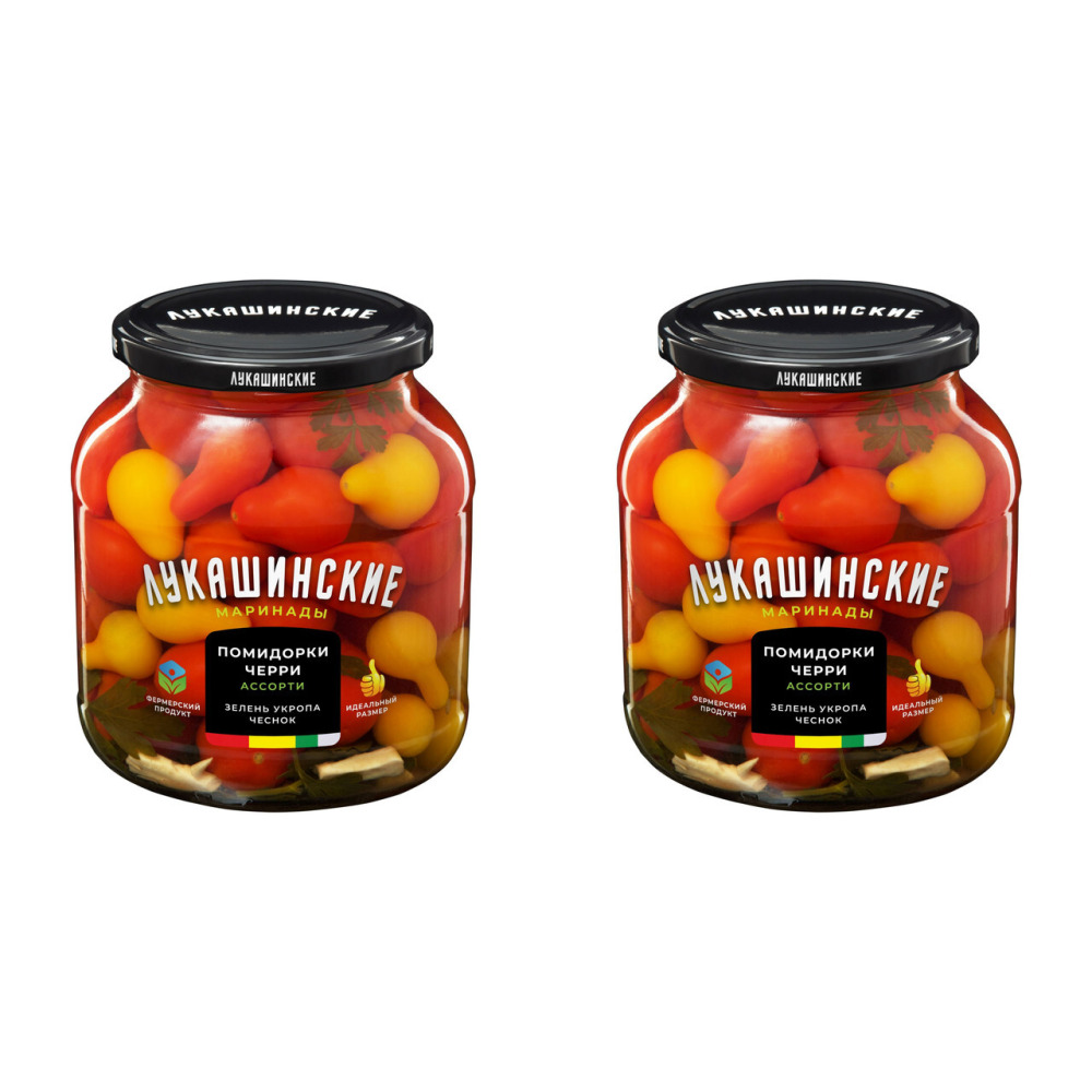 Помидорчики черри-ассорти "Лукашинские" маринованные с зеленью 670г.